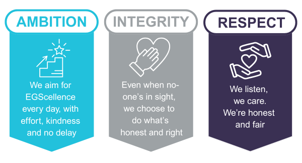 Here, at the Ellis Guilford School, we strive for EGScellence in everything we do; in learning, character and community. We have three core school values of ambition, integrity and respect. These values permeate our school, and we expect all children to take responsibility for embodying these values on a daily basis. We provide opportunities for children to display our values through Pledges in Practice.